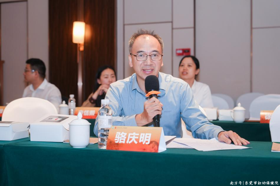 东莞市妇幼保健院院长骆庆明出席会议并发表讲话,他衷心感谢中华中医药学会长期以来对中医药人才梯队建设与学术思想薪火相传中的高度重视与大力支持,为医院搭建的"国医大师传承工作室分站"等高层次学术平台,切实推动了岐黄之术在妇幼健康领域的创新传承与发展。